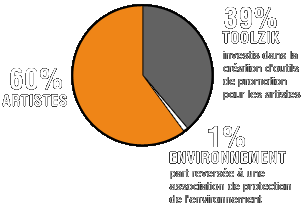 • 39% sont prélevés par Toolzik, afin d'investir dans la création d'outils visant à faciliter la promotion des artistes : Toolzik Card, Toolzik Web...